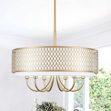 Uolfin Transitional Dining Room Drum Chandelier 3-Light Brass Gold Mid-Century