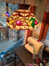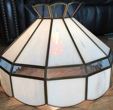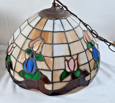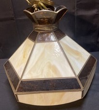 Vtg Tiffany Style Lamp Hanging Ceiling Stained Glass Brass Frame