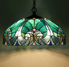 Tiffany Style Pendant Hanging Lamp Green Stained Glass Vintage Kitchen Light NEW