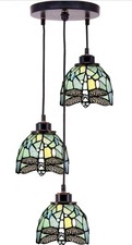 Tiffany Stained Glass Ceiling Pendant Light Fixture Vintage 3-light Hanging Lamp