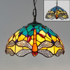 12 Inch Retro Stained Glass Tiffany Dragonfly Pendant Lamp Hanging Lighting