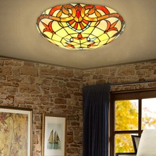 Tiffany Style Vintage Stained Glass Flush Mount Ceiling Light Pendant Lamp