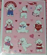 Vintage Hallmark Stickers teddy bears Valentine's Day hearts 1 Sheet