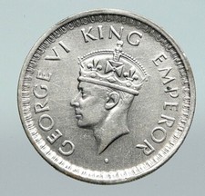 1944B INDIA States UK King George VI ANTIQUE Silver 1/2 RUPEE Indian Coin i91802