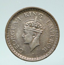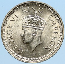 1944B INDIA States UK King George VI ANTIQUE Silver 1/2 RUPEE Indian Coin i91776