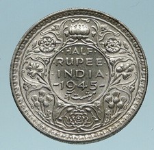 1943B INDIA States UK King George VI ANTIQUE Silver 1/2 RUPEE Indian Coin i91659