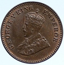 INDIA INDIAN BRITISH KM510 1932 VF-VERY FINE 1/2 PIE BRONZE OLD ANTIQUE COIN