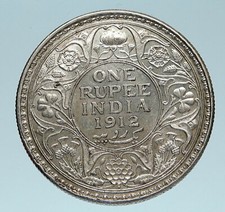 1912 INDIA UK King George V Silver Antique RUPEE Vintage Indian Coin i73952