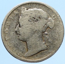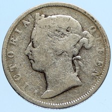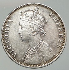 1877 BRITISH INDIA UK COLONY Queen Victoria ANTIQUE Old Silver RUPEE Coin i97279