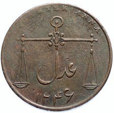 1835 BRITISH INDIA UK COLONY East India Co Antique Genuine 1/2 Anna Coin