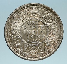 1919 INDIA UK King George V Silver Antique Vintage Old Indian RUPEE Coin i91867