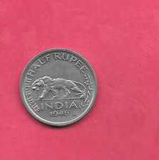 BRITISH INDIA KM553 1946 B UNC-MNINT UNCIRCULATED OLD ANTIQUE 1/2 RUPEE COIN