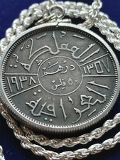1938 Iraq Ghazi Sterling Silver Coin Pendant On A 24" Italian Silver Rope Chain