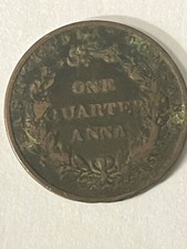 1858 1/4 Anna Vintage India Coin. Antique.