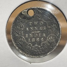India 1884 Silver Two Anna Genuine British 2 Queen Victoria Antique Coin F647