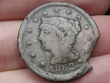 1852 Braided Hair Large Cent 1c Better Grade clipped planchet #83305