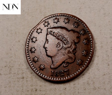 1827 Large Cent. Error Mint Made Clipped Planchet @ 7:00 Obverse. V.G. 144103