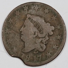 1817 Large Cent. Error. Mint Clipped Planchet. Good. 205683