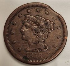 1856 Braided Hair Large Cent 1c w/ Clipped Planchet Error