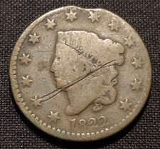 1822 large cent g vg n1 r3 clipped planchet matron head mint error type coin