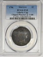 1796 1c S-83 Mint Error Clipped Planchet Liberty Cap Large Cent PCGS F 15