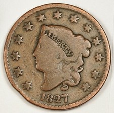 1827 Large Cent. Error Mint Made Clipped Planchet @ 7:00 Obverse. V.G. 144103