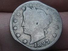 1897 Liberty Head V Nickel 5 Cent Piece- Good Details, Double Clipped Planchet