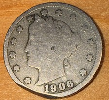 1906 Liberty v Nickel Coin, Circulated Clipped Planchet