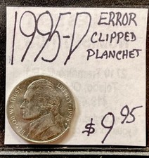 1995 D Jefferson Nickel Clipped Planchet Error Coin. UNC Cond. ENN Coins