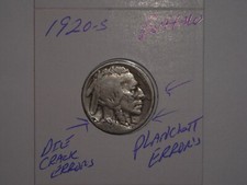 BUFFALO NICKEL 1920-S INDIAN HEAD PLANCHET, DIE CRACK ERROR'S 1920S LOT #1