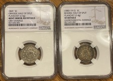 1869 Shield Nickel 5c Matching Pair Split Planchet Mint Error NGC Graded