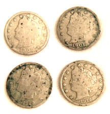 Lot of Four Antique Liberty Head V Nickels 5 Cent Coins 1901-1912 Collectible