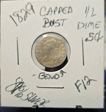 1829 CAPPED BUST 1/2 DIME 89% SILVER Fine Coin **With Bend Or Bow