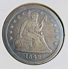 1842-O Seated Liberty Quarter Dollar LARGE DATE Silver New Orleans Mint USA Coin