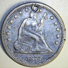 1877 S Liberty Seated Quarter ~ Holed Great Details ~ Low Start (VB18)