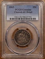 1865 Liberty Seated Quarter, PCGS AU det, pleasing DavidKahnRareCoins