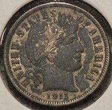 Silver Dime - Barber - 1911 (Sharp grade. See desc.)