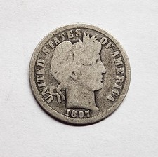 1907 Barber Dime G Good 90% Silver 10c US Type Coin Collectible