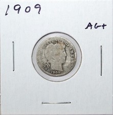 1909 US Barber Dime 90% Silver AG About Good Free Shipping