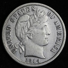 1914-S BARBER LIBERTY HEAD SILVER DIME 1914S US COIN