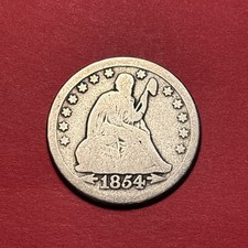 USA Seated Liberty Quarter Dollar 1854 Silver 25 Cents Antique US Coin