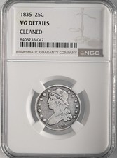 1835 25C CAPPED BUST SILVER QUARTER (B-6) NGC VG DETAILS "CLEANED" #8405235-047