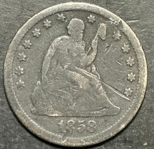 1858 Antique Seated Liberty 90% Silver Quarter 25c Collectible Coin HIGH grade