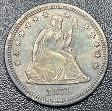 1871-P Seated Liberty Silver Quarter 25c Choice VF Very Fine Details Better Date