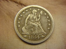 1854 SEATED LIBERTY QUARTER 25C ARROWS