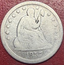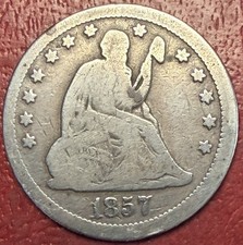 1857 Philadelphia Mint Silver Seated Liberty Quarter