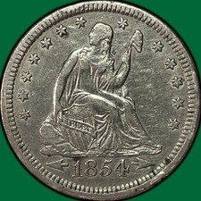 1854 U.S. Silver Seated Liberty Quarter with Arrows 🔥 (S293)