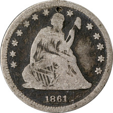1861 Seated Liberty Quarter 25C Silver U.S. Coin