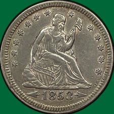 1853-P Seated Liberty Silver Quarter with Arrows and Rays