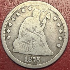 1/4 Dollar, Seated Liberty Quarter, Silver Coin 1875 ☆ 989 ☆ Nice Coin Type Set